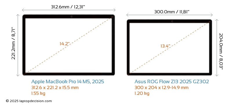 Prise AudioLes deux MacBook Pro 14 M5, 2025 et ROG Flow Z13 2025 GZ302 sont équipés d'une prise audio de 3,5 mm, permettant une connexion sans interruption aux écouteurs et haut-parleurs.
