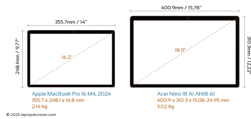 HDMILes deux MacBook Pro 16 M4, 2024 et Nitro 18 AI AN18-61 disposent d'un port HDMI (1x HDMI 2.1) pour se connecter à des moniteurs externes.