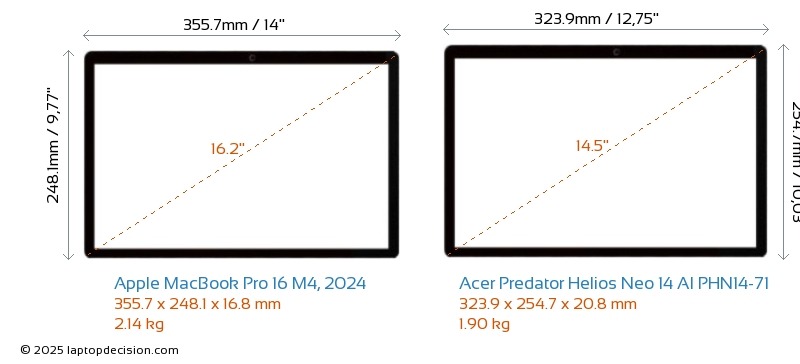 Prise AudioLes deux MacBook Pro 16 M4, 2024 et Predator Helios Neo 14 AI PHN14-71 sont équipés d'une prise audio de 3,5 mm, permettant une connexion sans interruption aux écouteurs et haut-parleurs.