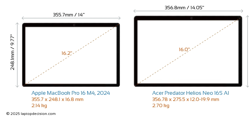 Prise AudioLes deux MacBook Pro 16 M4, 2024 et Predator Helios Neo 16S AI sont équipés d'une prise audio de 3,5 mm, permettant une connexion sans interruption aux écouteurs et haut-parleurs.