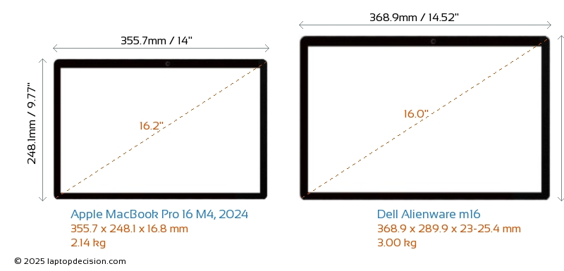 HDMILes deux MacBook Pro 16 M4, 2024 et Alienware m16 disposent d'un port HDMI (1x HDMI 2.1) pour se connecter à des moniteurs externes.