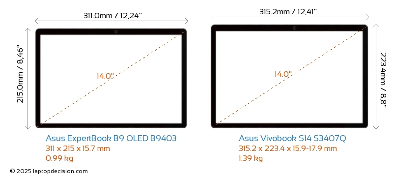 USBLes deux ExpertBook B9 OLED B9403 et Vivobook S14 S3407Q disposent de ports USB-A. ExpertBook B9 OLED B9403 dispose de 1x USB 3.2 ports USB-A, tandis que Vivobook S14 S3407Q en dispose de 2x USB 3.2.Les deux ExpertBook B9 OLED B9403 et Vivobook S14 S3407Q disposent de 2x USB 4.0 ports USB Type-C.