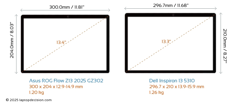 Prise AudioLes deux ROG Flow Z13 2025 GZ302 et Inspiron 13 5310 sont équipés d'une prise audio de 3,5 mm, permettant une connexion sans interruption aux écouteurs et haut-parleurs.