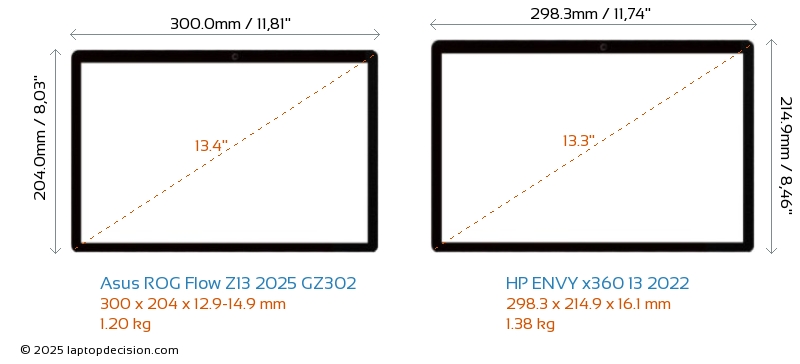 HDMI ROG Flow Z13 2025 GZ302 dispose d'un port HDMI (1x HDMI 2.1) pour se connecter à des moniteurs externes. ENVY x360 13 2022 n'a pas de port HDMI.