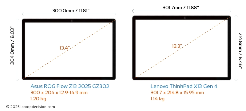 Thunderbolt ThinkPad X13 Gen 4 est équipé d'un port Thunderbolt 4. ROG Flow Z13 2025 GZ302 n'a pas de port Thunderbolt.