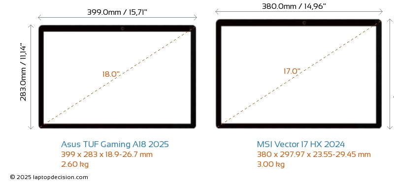 HDMILes deux TUF Gaming A18 2025 et Vector 17 HX 2024 disposent d'un port HDMI (1x HDMI 2.1) pour se connecter à des moniteurs externes.