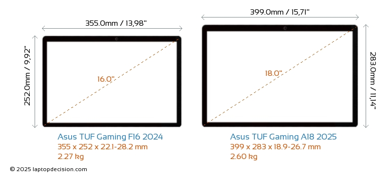 Thunderbolt TUF Gaming F16 2024 est équipé d'un port Thunderbolt 4. TUF Gaming A18 2025 n'a pas de port Thunderbolt.