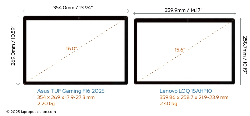 USBLes deux TUF Gaming F16 2025 et LOQ 15AHP10 disposent de 3x USB 3.2 ports USB-A.Les deux TUF Gaming F16 2025 et LOQ 15AHP10 disposent de ports USB Type-C. TUF Gaming F16 2025 dispose de 2x USB 3.2 ports USB Type-C, tandis que LOQ 15AHP10 en dispose de 1x USB 3.2.