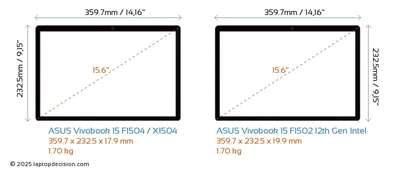 USBLes deux Vivobook 15 F1504 / X1504 et Vivobook 15 F1502 12th Gen Intel disposent de 3x USB 3.2 ports USB-A.Les deux Vivobook 15 F1504 / X1504 et Vivobook 15 F1502 12th Gen Intel disposent de 1x USB 3.2 ports USB Type-C.