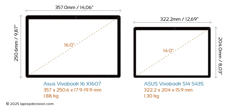 ThunderboltVivobook S14 S435 est équipé d'un port Thunderbolt 4. Vivobook 16 X1607 n'a pas de port Thunderbolt.