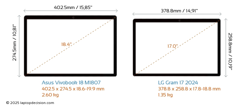 Thunderbolt Gram 17 2024 est équipé d'un port Thunderbolt 4. Vivobook 18 M1807 n'a pas de port Thunderbolt.