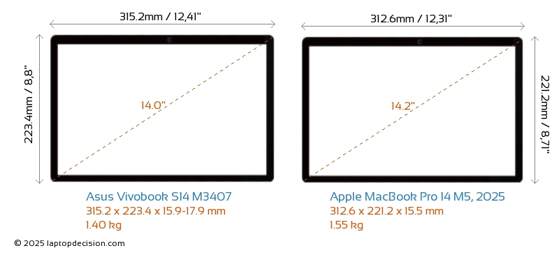 Prise AudioLes deux Vivobook S14 M3407 et MacBook Pro 14 M5, 2025 sont équipés d'une prise audio de 3,5 mm, permettant une connexion sans interruption aux écouteurs et haut-parleurs.