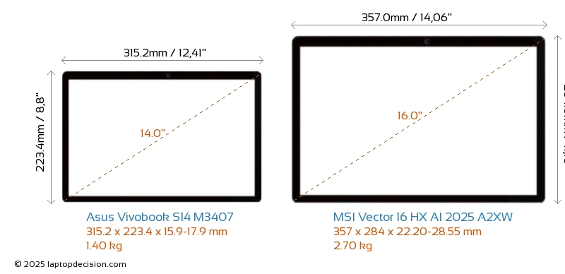 HDMILes deux Vivobook S14 M3407 et Vector 16 HX AI 2025 A2XW disposent d'un port HDMI (1x HDMI 2.1) pour se connecter à des moniteurs externes.