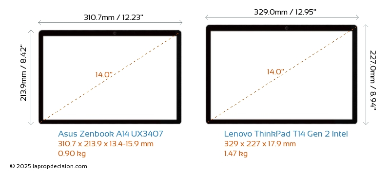 ThunderboltLes deux Zenbook A14 UX3407 et ThinkPad T14 Gen 2 Intel sont équipés de Thunderbolt 4 ports.