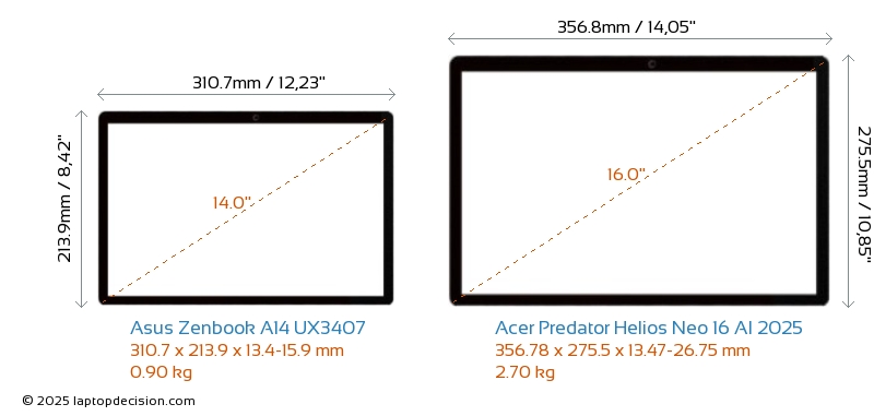 ThunderboltLes deux Zenbook A14 UX3407 et Predator Helios Neo 16 AI 2025 sont équipés de Thunderbolt 4 ports.