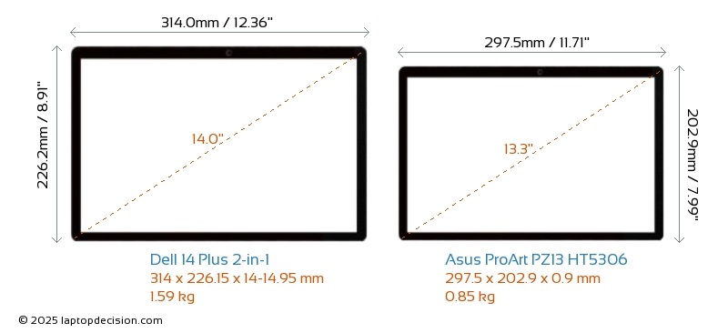 USB 14 Plus 2-in-1 est équipé de 1x USB 3.2 ports USB-A. ProArt PZ13 HT5306 n'a pas de ports USB-A.Les deux 14 Plus 2-in-1 et ProArt PZ13 HT5306 disposent de 2x USB 4.0 ports USB Type-C.