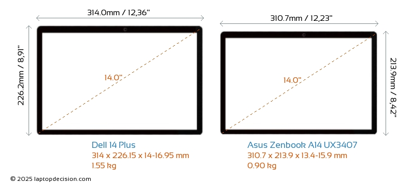 USBLes deux 14 Plus et Zenbook A14 UX3407 disposent de 1x USB 3.2 ports USB-A.Les deux 14 Plus et Zenbook A14 UX3407 disposent de 2x USB 4.0 ports USB Type-C.