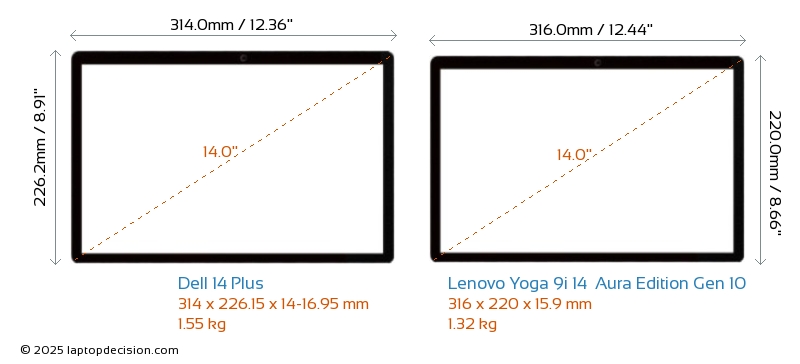 HDMI 14 Plus dispose d'un port HDMI (1x HDMI 2.1) pour se connecter à des moniteurs externes. Yoga 9i 14 Aura Edition Gen 10 n'a pas de port HDMI.