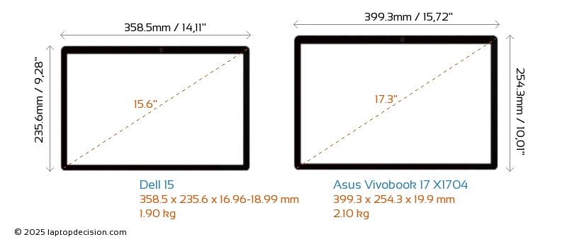 USBLes deux 15 et Vivobook 17 X1704 disposent de ports USB-A. 15 dispose de 2x USB 3.2 ports USB-A, tandis que Vivobook 17 X1704 en dispose de 3x USB 3.2.Les deux 15 et Vivobook 17 X1704 disposent de 1x USB 3.2 ports USB Type-C.