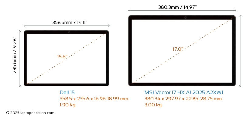 HDMILes deux 15 et Vector 17 HX AI 2025 A2XWJ disposent d'un port HDMI. 15 offre 1x HDMI 1.4, tandis que Vector 17 HX AI 2025 A2XWJ offre 1x HDMI 2.1.