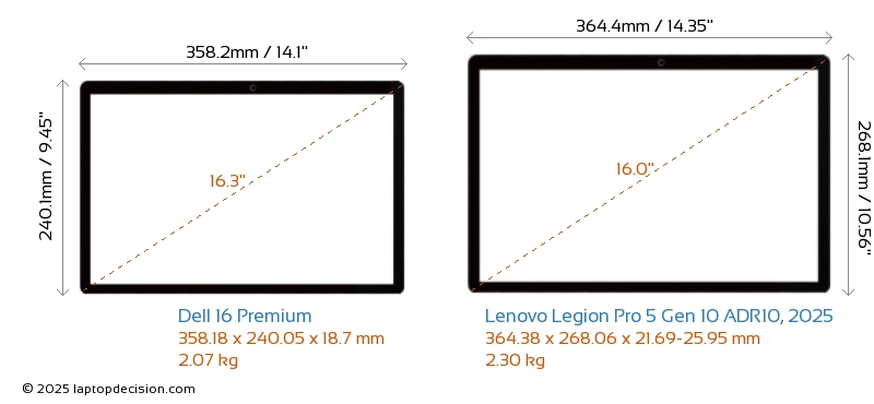 HDMI Legion Pro 5 Gen 10 ADR10, 2025 dispose d'un port HDMI (1x HDMI 2.1) pour se connecter à des moniteurs externes. 16 Premium n'a pas de port HDMI.