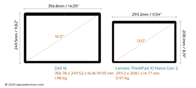 HDMI 16 dispose d'un port HDMI (1x HDMI 1.4) pour se connecter à des moniteurs externes. ThinkPad X1 Nano Gen 2 n'a pas de port HDMI.