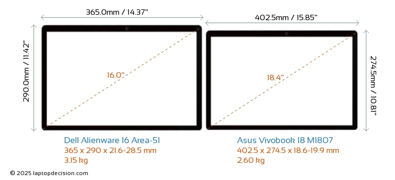 HDMILes deux Alienware 16 Area-51 et Vivobook 18 M1807 disposent d'un port HDMI (1x HDMI 2.1) pour se connecter à des moniteurs externes.
