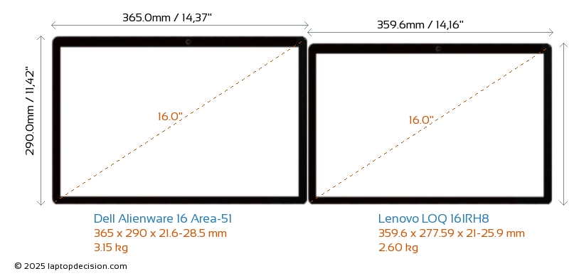 USBLes deux Alienware 16 Area-51 et LOQ 16IRH8 disposent de 3x USB 3.2 ports USB-A.Les deux Alienware 16 Area-51 et LOQ 16IRH8 disposent de ports USB Type-C. Alienware 16 Area-51 dispose de 2x USB 4.0 ports USB Type-C, tandis que LOQ 16IRH8 en dispose de 1x USB 3.2.