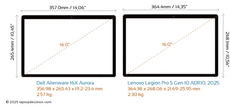 Thunderbolt Alienware 16X Aurora est équipé d'un port Thunderbolt 4. Legion Pro 5 Gen 10 ADR10, 2025 n'a pas de port Thunderbolt.