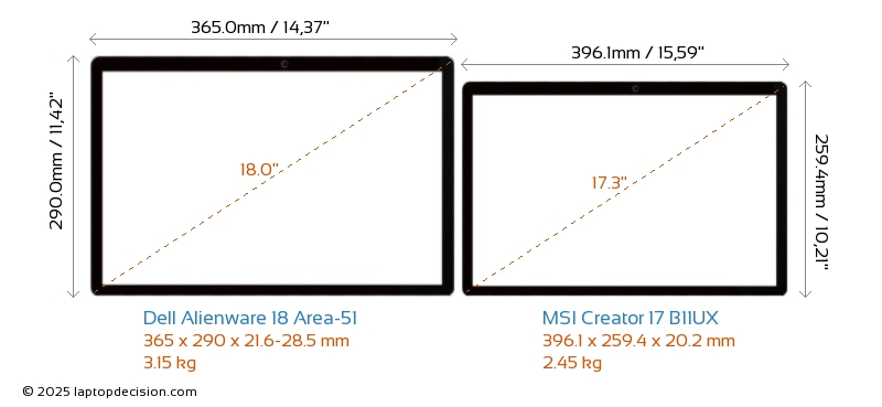 ThunderboltLes deux Alienware 18 Area-51 et Creator 17 B11UX disposent de ports Thunderbolt. Alienware 18 Area-51 dispose de Thunderbolt 5, tandis que Creator 17 B11UX dispose de Thunderbolt 4.