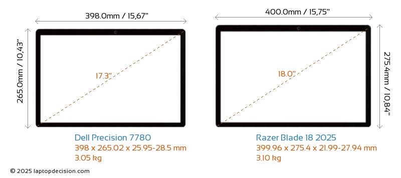 ThunderboltLes deux Precision 7780 et Blade 18 2025 disposent de ports Thunderbolt. Precision 7780 dispose de Thunderbolt 4, tandis que Blade 18 2025 dispose de Thunderbolt 5.