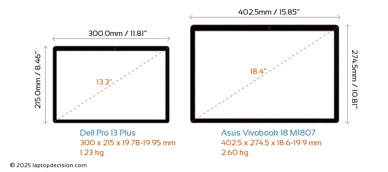 USBLes deux Pro 13 Plus et Vivobook 18 M1807 disposent de 2x USB 3.2 ports USB-A.Les deux Pro 13 Plus et Vivobook 18 M1807 disposent de 2x USB 4.0 ports USB Type-C.