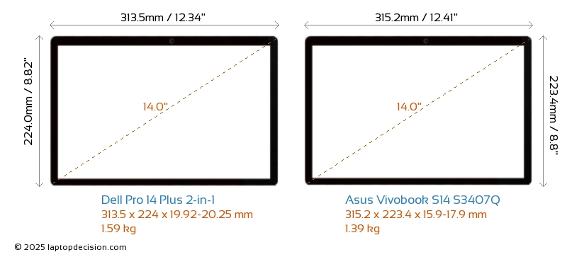 USBLes deux Pro 14 Plus 2-in-1 et Vivobook S14 S3407Q disposent de 2x USB 3.2 ports USB-A.Les deux Pro 14 Plus 2-in-1 et Vivobook S14 S3407Q disposent de 2x USB 4.0 ports USB Type-C.