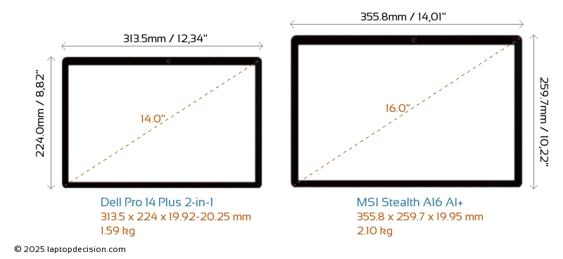 USBLes deux Pro 14 Plus 2-in-1 et Stealth A16 AI+ disposent de 2x USB 3.2 ports USB-A.Les deux Pro 14 Plus 2-in-1 et Stealth A16 AI+ disposent de ports USB Type-C. Pro 14 Plus 2-in-1 dispose de 2x USB 4.0 ports USB Type-C, tandis que Stealth A16 AI+ en dispose de 1x USB 4.0.