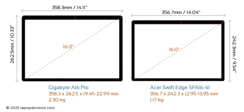 HDMILes deux A16 Pro et Swift Edge SFA16-41 disposent d'un port HDMI (1x HDMI 2.1) pour se connecter à des moniteurs externes.
