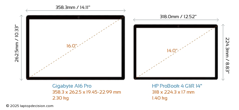 HDMILes deux A16 Pro et ProBook 4 G1iR 14" disposent d'un port HDMI (1x HDMI 2.1) pour se connecter à des moniteurs externes.