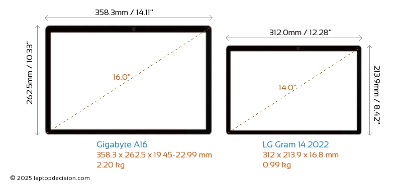 ThunderboltGram 14 2022 est équipé d'un port Thunderbolt 4. A16 n'a pas de port Thunderbolt.