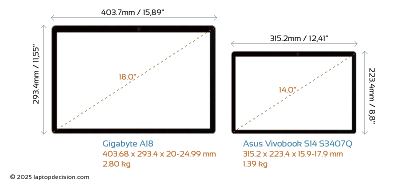 USBLes deux A18 et Vivobook S14 S3407Q disposent de ports USB-A. A18 dispose de 3x USB 3.2 ports USB-A, tandis que Vivobook S14 S3407Q en dispose de 2x USB 3.2.Les deux A18 et Vivobook S14 S3407Q disposent de ports USB Type-C. A18 dispose de 1x USB 3.2 ports USB Type-C, tandis que Vivobook S14 S3407Q en dispose de 2x USB 4.0.