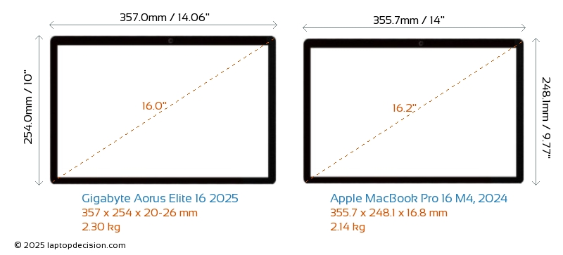 ThunderboltLes deux Aorus Elite 16 2025 et MacBook Pro 16 M4, 2024 sont équipés de Thunderbolt 5 ports.