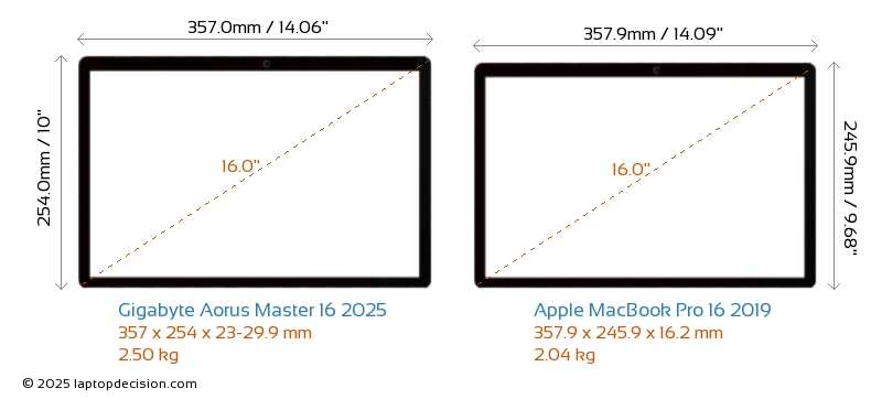 Prise AudioLes deux Aorus Master 16 2025 et MacBook Pro 16 2019 sont équipés d'une prise audio de 3,5 mm, permettant une connexion sans interruption aux écouteurs et haut-parleurs.
