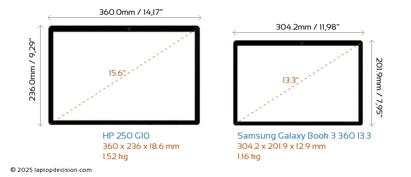 HDMILes deux 250 G10 et Galaxy Book 3 360 13.3 disposent d'un port HDMI (1x HDMI 1.4) pour se connecter à des moniteurs externes.