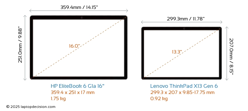 USBLes deux EliteBook 6 G1a 16" et ThinkPad X13 Gen 6 disposent de 2x USB 3.2 ports USB-A.Les deux EliteBook 6 G1a 16" et ThinkPad X13 Gen 6 disposent de 2x USB 4.0 ports USB Type-C.