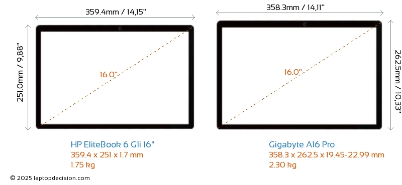 USBLes deux EliteBook 6 G1i 16" et A16 Pro disposent de 2x USB 3.2 ports USB-A.Les deux EliteBook 6 G1i 16" et A16 Pro disposent de ports USB Type-C. EliteBook 6 G1i 16" dispose de 2x USB 4.0 ports USB Type-C, tandis que A16 Pro en dispose de 2x USB 3.2.