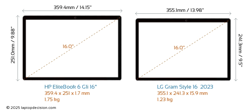 HDMI EliteBook 6 G1i 16" dispose d'un port HDMI (1x HDMI 2.1) pour se connecter à des moniteurs externes. Gram Style 16 2023 n'a pas de port HDMI.