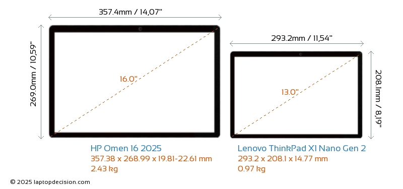 HDMI Omen 16 2025 dispose d'un port HDMI (1x HDMI 2.1) pour se connecter à des moniteurs externes. ThinkPad X1 Nano Gen 2 n'a pas de port HDMI.