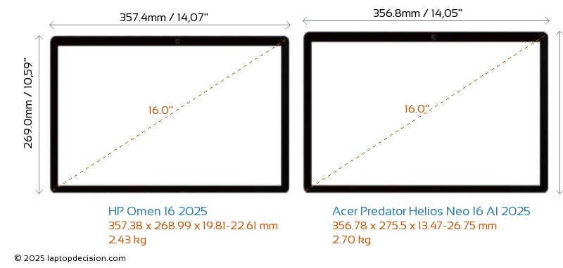 USBLes deux Omen 16 2025 et Predator Helios Neo 16 AI 2025 disposent de 3x USB 3.2 ports USB-A.Les deux Omen 16 2025 et Predator Helios Neo 16 AI 2025 disposent de ports USB Type-C. Omen 16 2025 dispose de 1x USB 4.0 ports USB Type-C, tandis que Predator Helios Neo 16 AI 2025 en dispose de 2x USB 4.0.