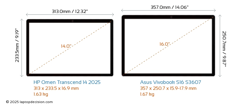 HDMILes deux Omen Transcend 14 2025 et Vivobook S16 S3607 disposent d'un port HDMI (1x HDMI 2.1) pour se connecter à des moniteurs externes.