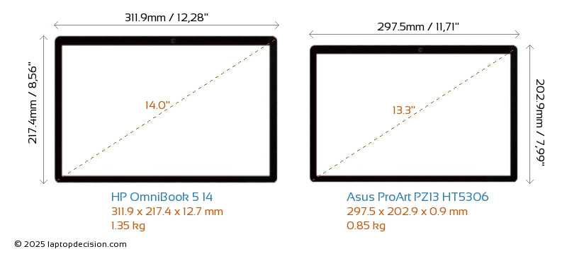 HDMINeither OmniBook 5 14 nor ProArt PZ13 HT5306 has an HDMI port for connecting to external monitors. Aucun des deux OmniBook 5 14 ni ProArt PZ13 HT5306 n'a de port HDMI pour se connecter à des moniteurs externes.