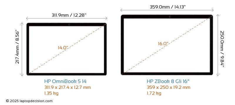 HDMI ZBook 8 G1i 16" dispose d'un port HDMI (1x HDMI 2.1) pour se connecter à des moniteurs externes. OmniBook 5 14 n'a pas de port HDMI.