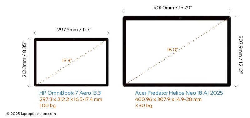 Prise AudioLes deux OmniBook 7 Aero 13.3 et Predator Helios Neo 18 AI 2025 sont équipés d'une prise audio de 3,5 mm, permettant une connexion sans interruption aux écouteurs et haut-parleurs.